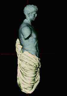 Chaque morceau de la statue a été numérisé indépendamment et, dans un second temps, la statue a été reconstruite. Le drapé tout d’abord ; puis le torse a été encastré dans le logement du drapé permettant de vérifier leur mutuelle appartenance. Le logiciel permit en outre de déterminer le centre de gravité des diverses parties de la statue, ainsi de procéder à une étude de statique, puis à la modélisation de son support et enfin à étudier les manipulations à effectuer pour son remontage au musée d’Arles.